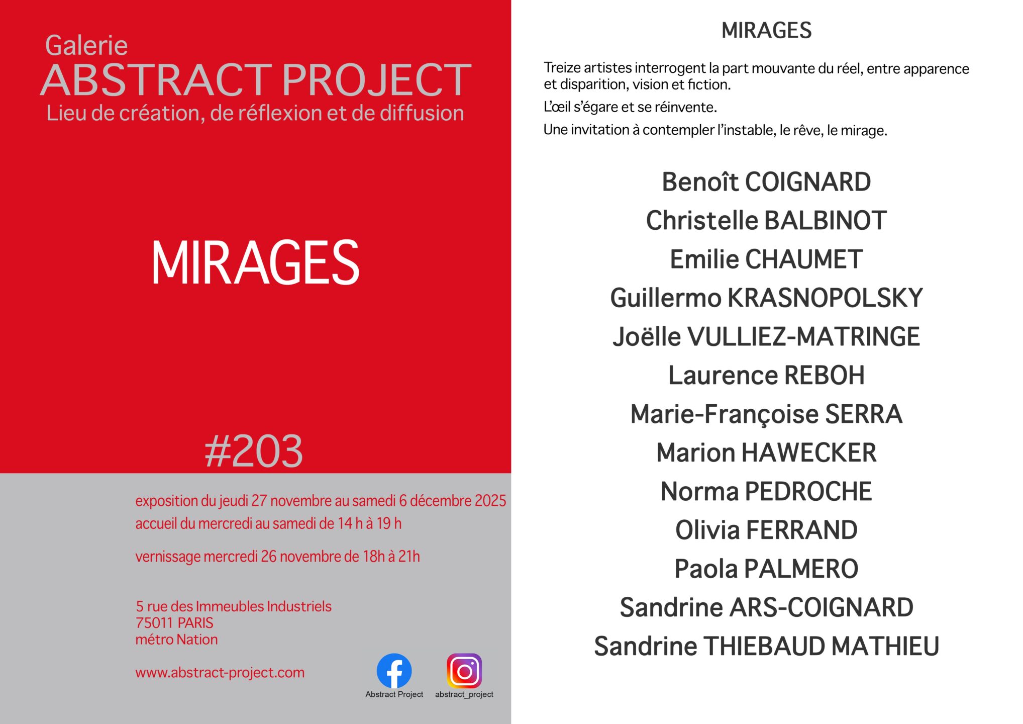 Les mirages brouillent nos certitudes et ouvrent un espace où l’œil vacille, où l’esprit s’égare et se réinvente. Entre apparence et disparition, entre désir et illusion, ils nous rappellent que le réel n’est jamais figé, mais toujours traversé de visions, de fictions et de rêves.