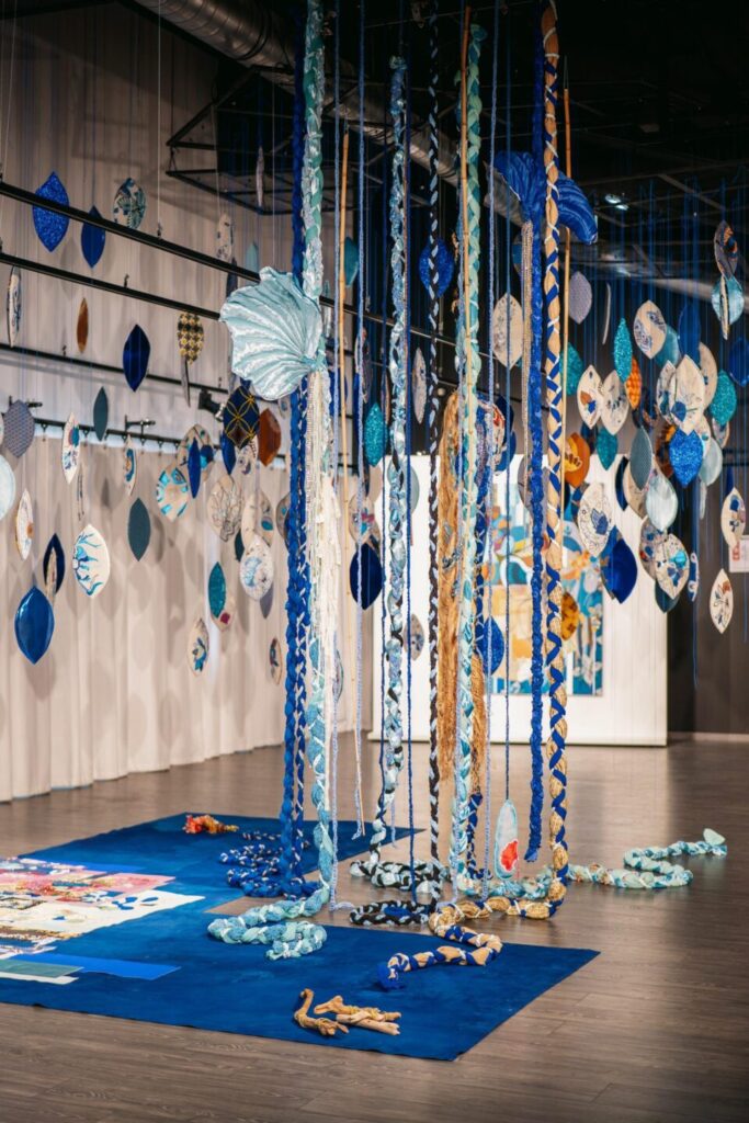 Les œuvres de Stéphanie Laleuw nous invitent à une célébration joyeuse du vivant. Échos aux enchevêtrements de la nature, aux univers bigarrés des marchés et carnavals du monde entier, les ornements se démultiplient, prolifèrent, occupent l’espace tout entier. Pour cette exposition, l’artiste propose une installation de broderies réalisées en collaboration avec plus d’une centaine de personnes de la région, interrogeant le processus créatif comme possible créateur de liens et de rencontres dans notre société. Interactions formelles et humaines ne font plus qu’un pour réinventer une nouvelle poésie du quotidien.