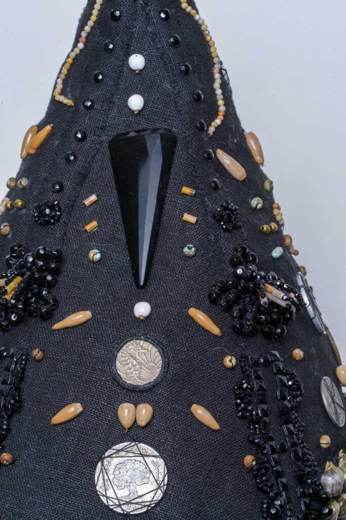 Elles sont généralement ornées de fils de perles, de plumes de poulet et parfois de cauris qui étaient traditionnellement échangés avec diverses tribus de la région et sont devenus un symbole de prospérité. Les pièces d’argent plus précisément sont très prisées et sont les détails les plus accentués de la coiffe. Les anciennes pièces d’argents coloniales telles que la piastre indochinoise ou les roupies d’Inde Britannique sont les plus collectées car elles affichent la richesse et le statut de son propriétaire.