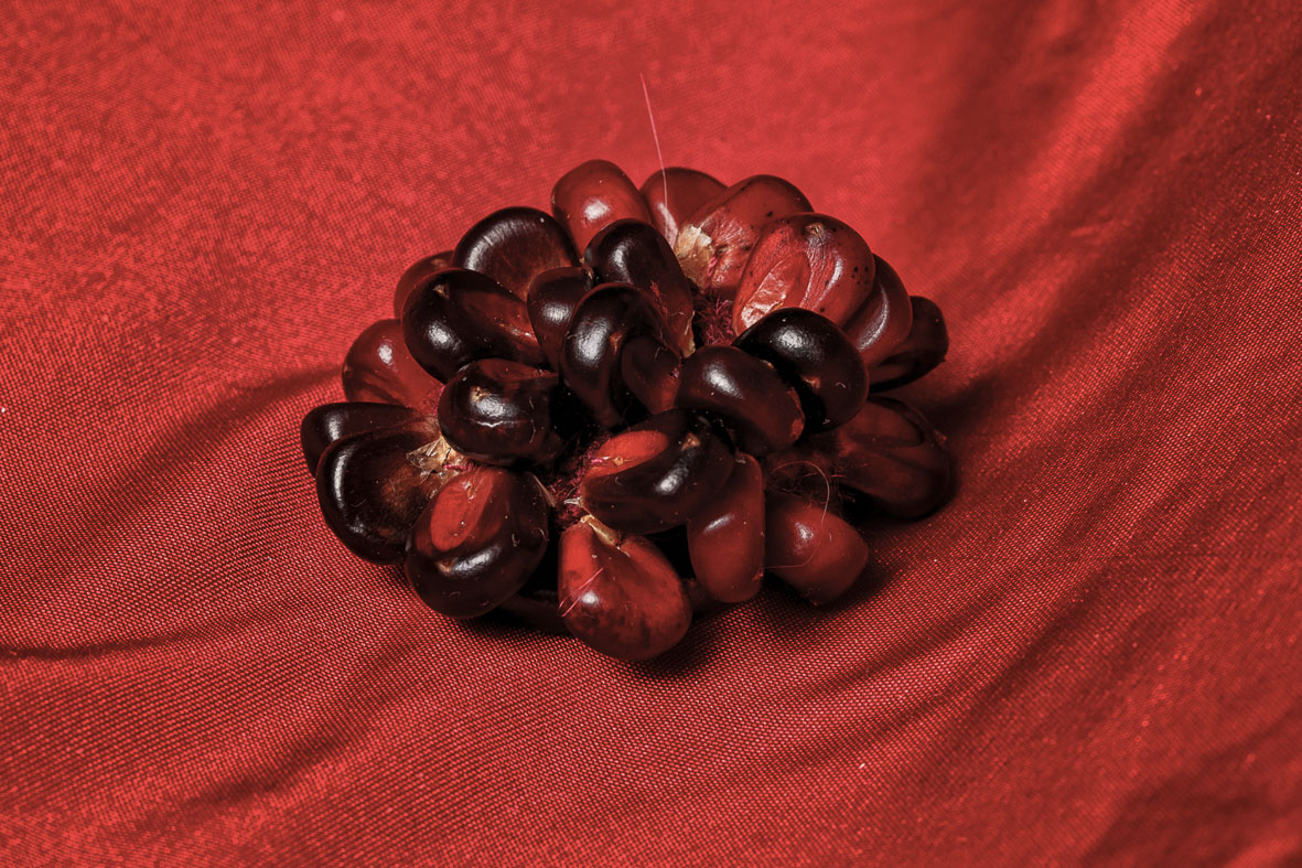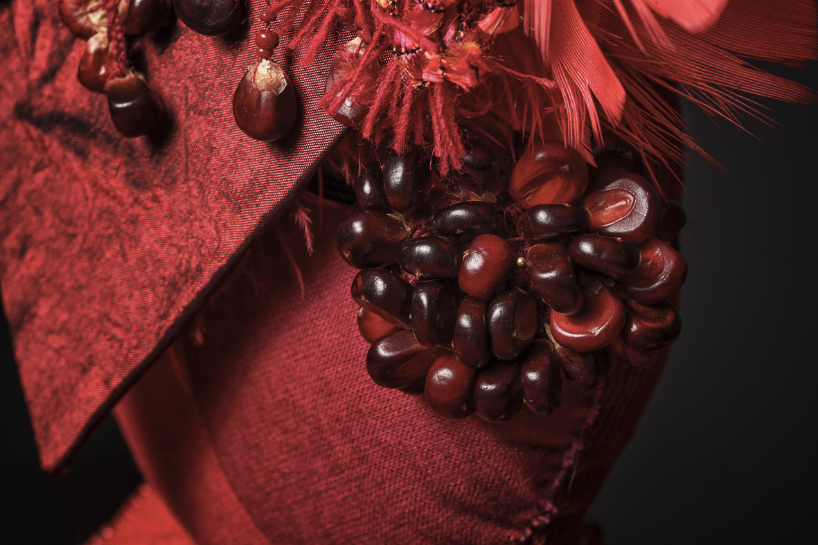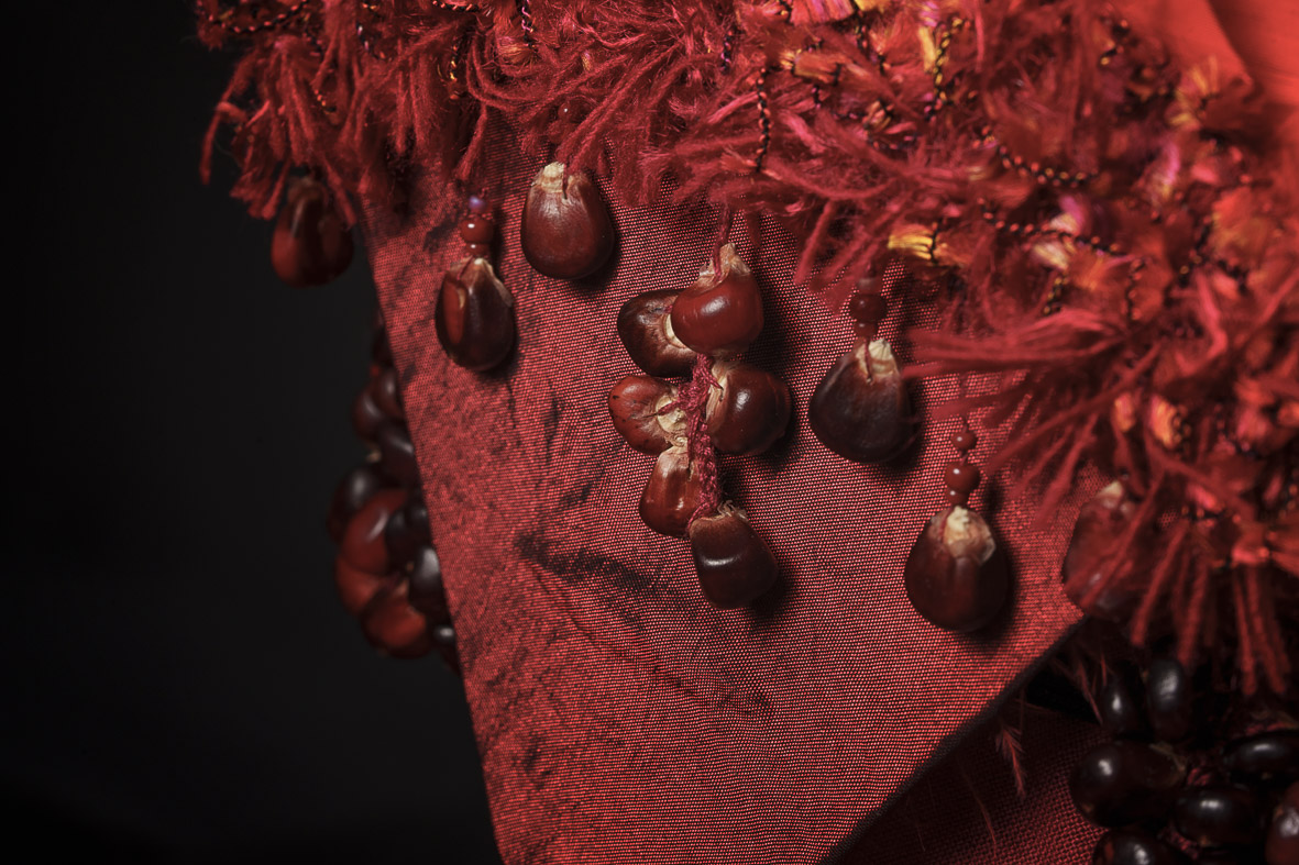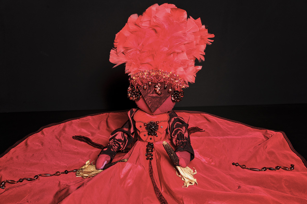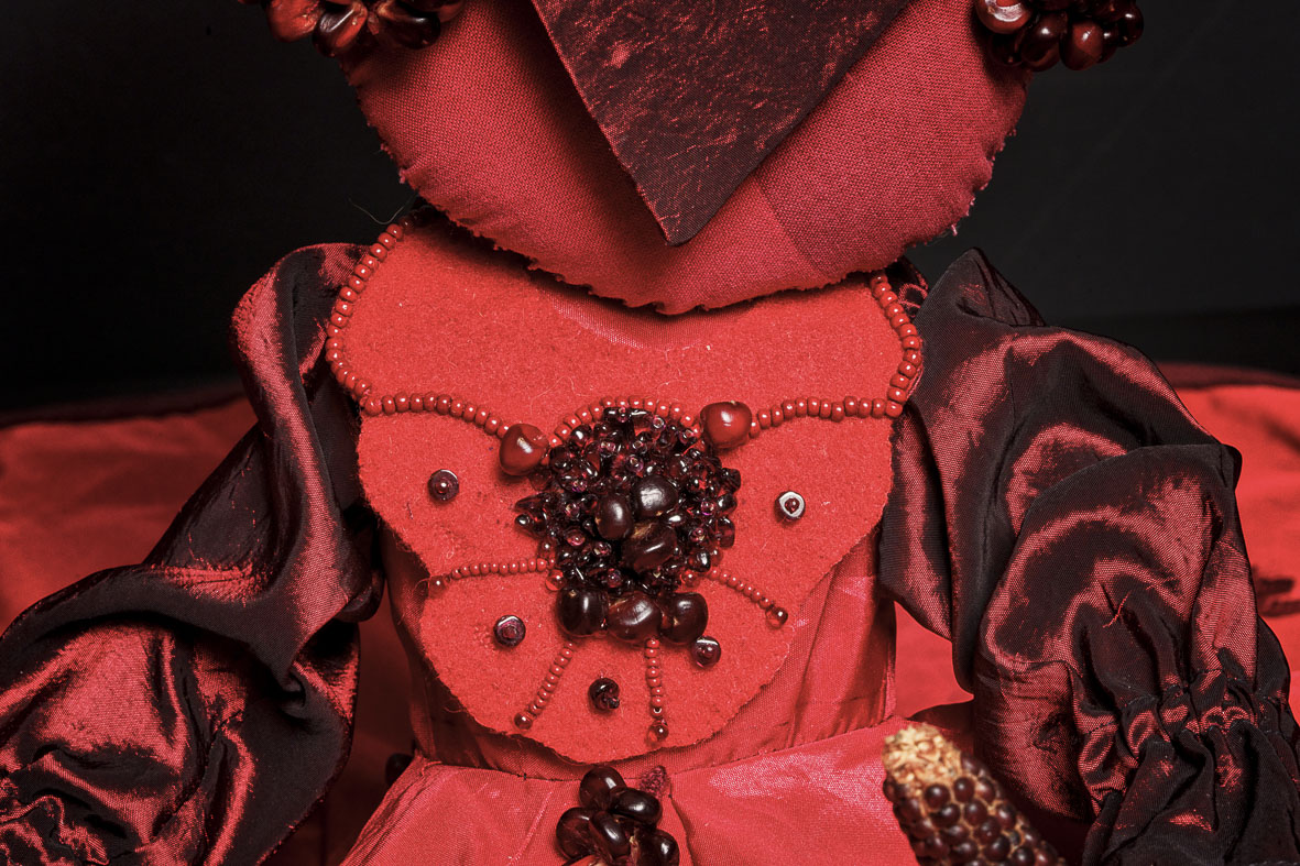 La poupée de chiffon, toute de rouge vêtue et parée de grains de maïs rouges, représente les maïs divinités.