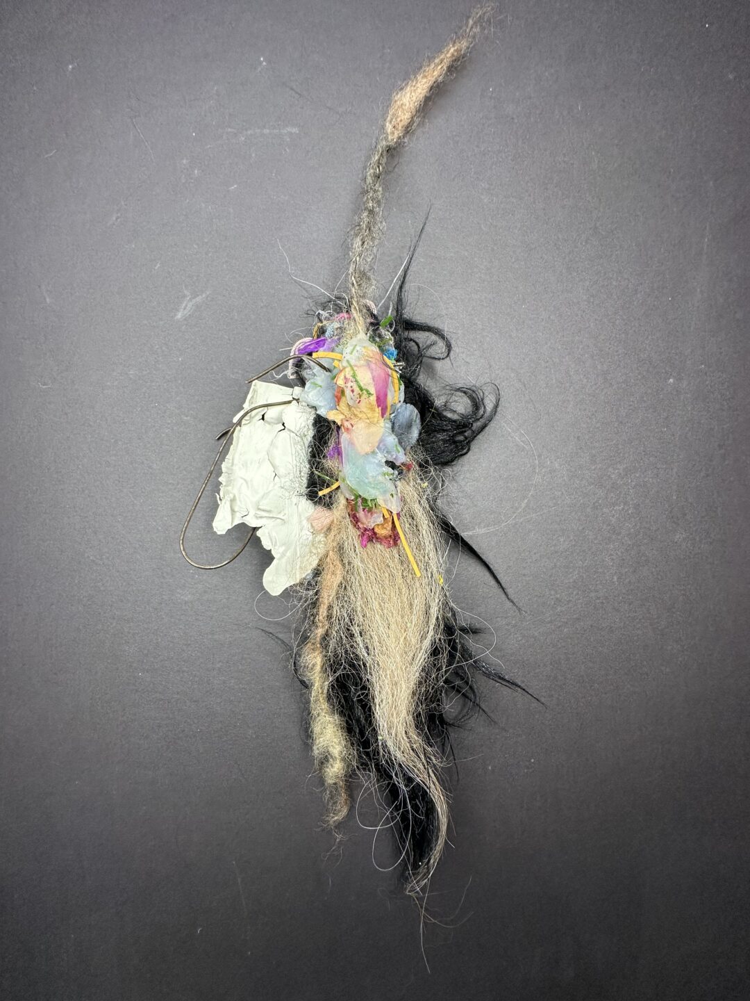 A travers d’assemblages de matières textiles, organiques et synthétiques, je construis des formes fragmentées, ambiguës, situées entre le vivant et le résidu.